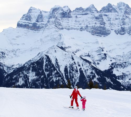 For children, the meeting point is at Jardin des Neiges (Swiss Snow Kids Village), behind the village sports center.