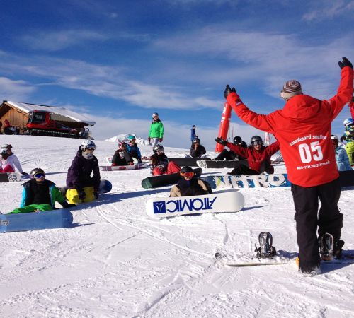 For Snowboard group lessons, the meeting is at the bottom of the Foilleuse Gondola
