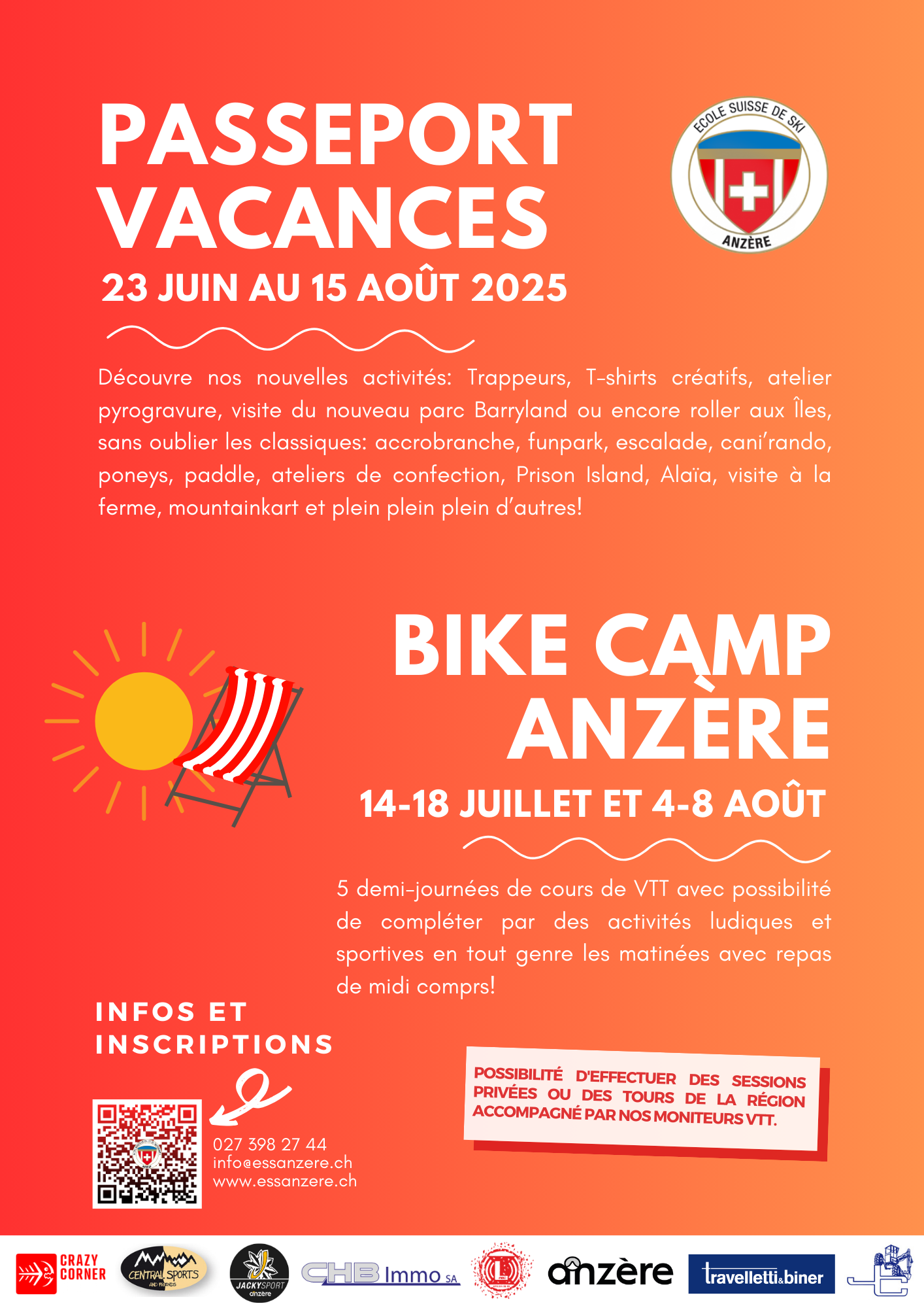 Outdoor-Aktivitäten von 9 bis 12 Uhr von ESS Anzère, Mountainbike-Kurse an den Nachmittagen mit ausgebildeten Betreuern und Mittagessen inbegriffen.