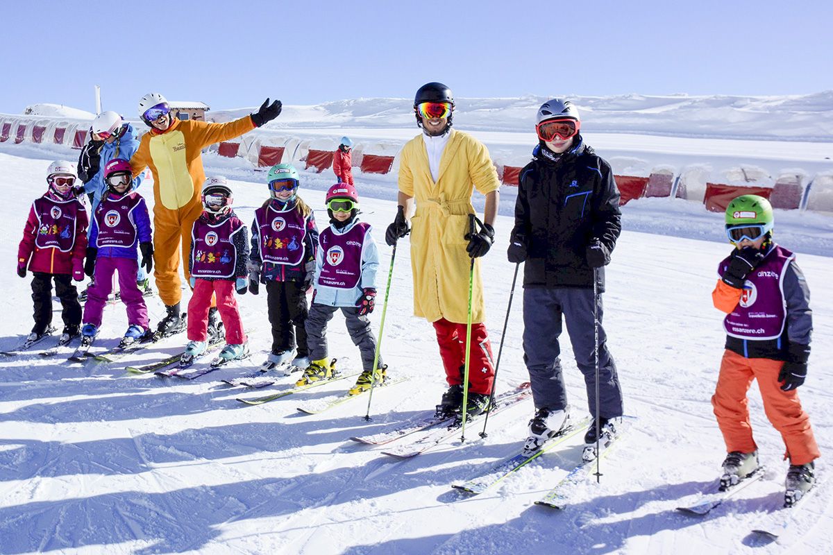 L’équipement de base comprend les skis, chaussures et bâtons. Le casque, des lunettes appropriées et gants sont obligatoires pour tous les cours enfants. Habillez vos enfants en fonction de la météo du jour. N’oubliez pas la crème solaire.
