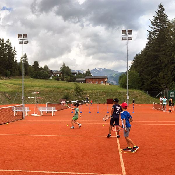 Format: 5.5 journées de tennis ou 6 demi-journées de cours de Tennis complétées par des activités ludiques et sportives en tous genres les après-midi (encadrées par l'école suisse de ski) ou 6 demi-journée de tennis uniquement en matinée.