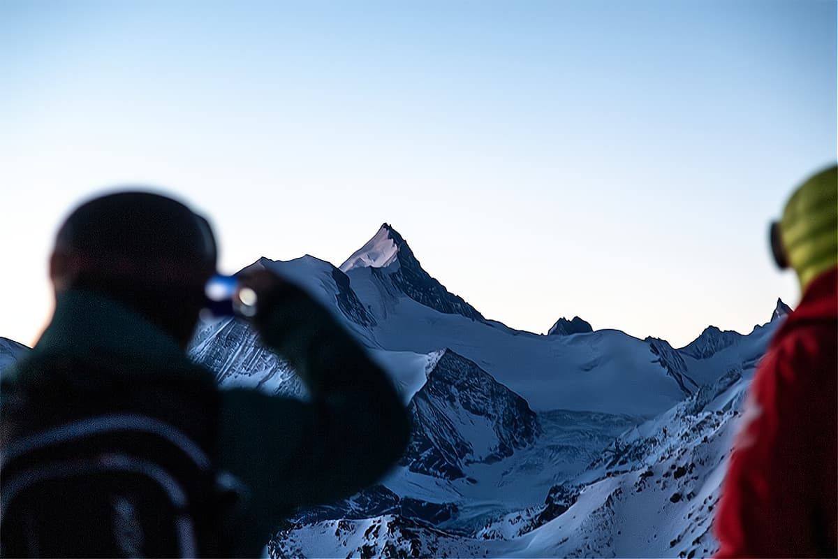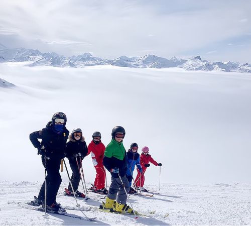 Gipfel des Tsapé-Sessellifts, am Sammelplatz der Schweizer Skischule in Chandolin.