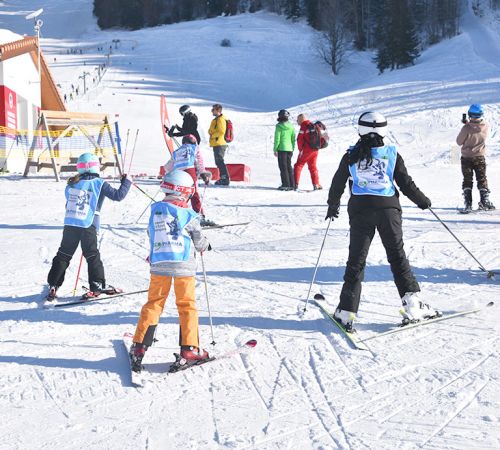 Nous ne prêtons pas de matériel à l’école de ski. Les enfants doivent être équipés avec leur propre matériel.