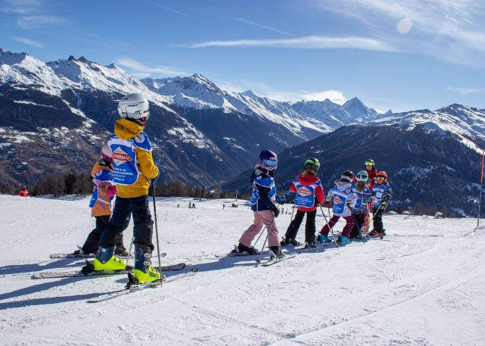 Group lessons from 6 to 16 years old are divided into 3 Leagues: Blue League (Beginner), Red League (Advanced), Black League (Expert). The latter are divided into 3 levels: Prince/Princess, King/Queen, Star. The Black League has one level: Black Prince. After this level, your children can register in the Swiss Snow Academy.
