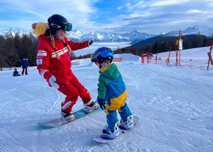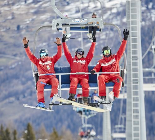 The snowboard lessons are divided into 2 Leagues: Blue League (Beginner), Red League (Advanced). The Blue and Red League are divided into 3 levels: Prince/Princess, King/Queen, Star. Once you have passed all these levels, you can register for the Swiss Snow Academy.