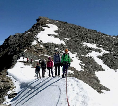 Ensemble, vous gravirez en rando glaciaire « L 'Allalinhorn », pic culminant à 4027 mètres d'altitude.
