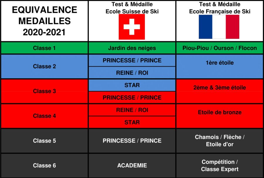 Les niveaux "Black King" et "Black Star" ainsi que "Black Prince", pour le snowboard, sont remplacés par la "Swiss Snow Academy"