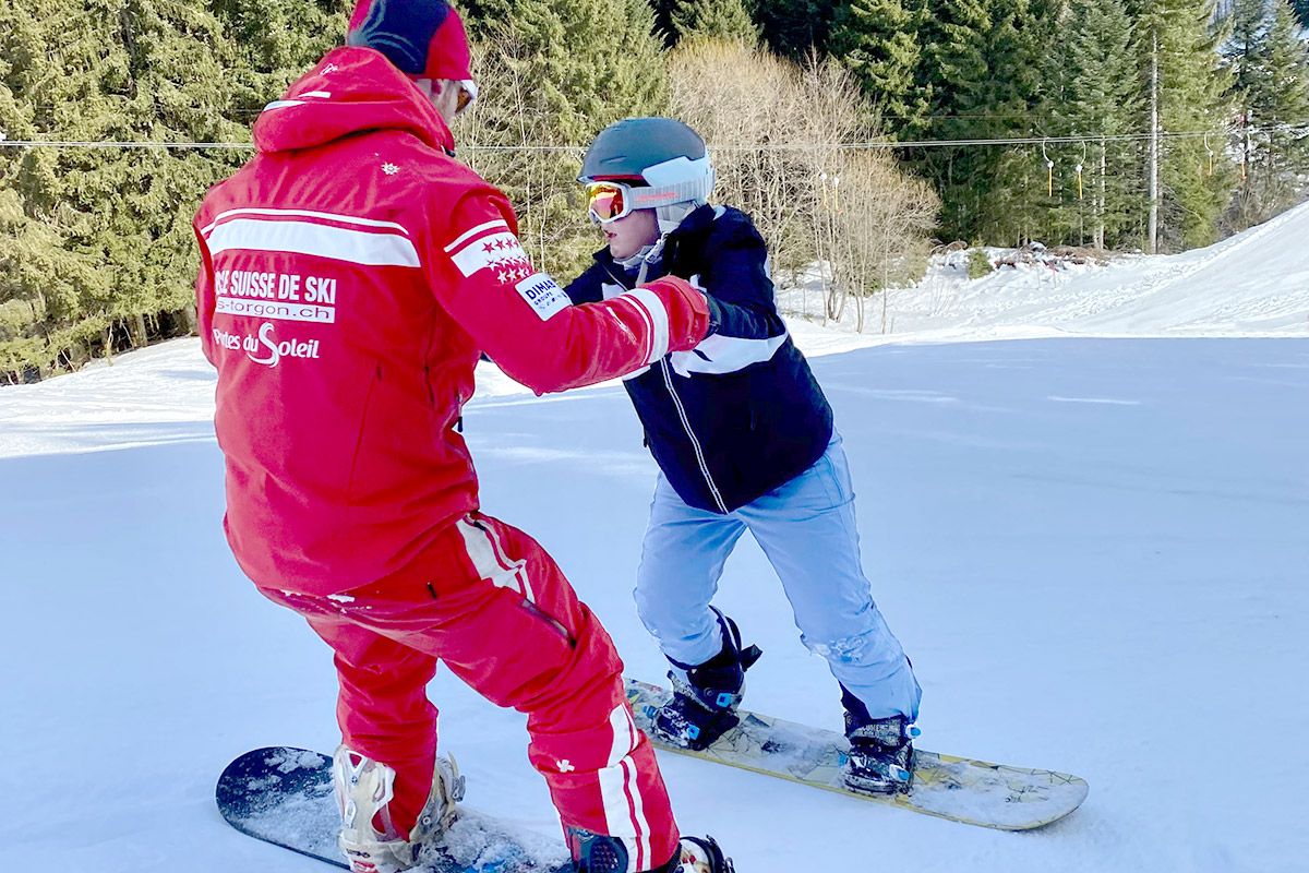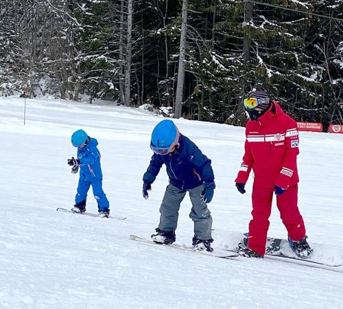 Si vous n'avez jamais pratiqué le snowboard, votre moniteur vous initiera aux joies de faire vos premiers virages en terrain facile et d'apprendre à monter sur un téléski.