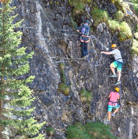 Entre ciel et terre, attachés en tout temps à un câble de sécurité, explorez le flan de la montagne et découvrez des paysages et panoramas exceptionnels.