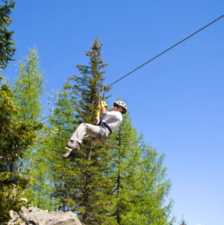 Laissez-vous griser par la sensation de vol et envoyez-vous en l'air en toute confiance et en toute sécurité, accroché à un câble fixe. Plaisir, adrénaline et bonne humeur garantis !